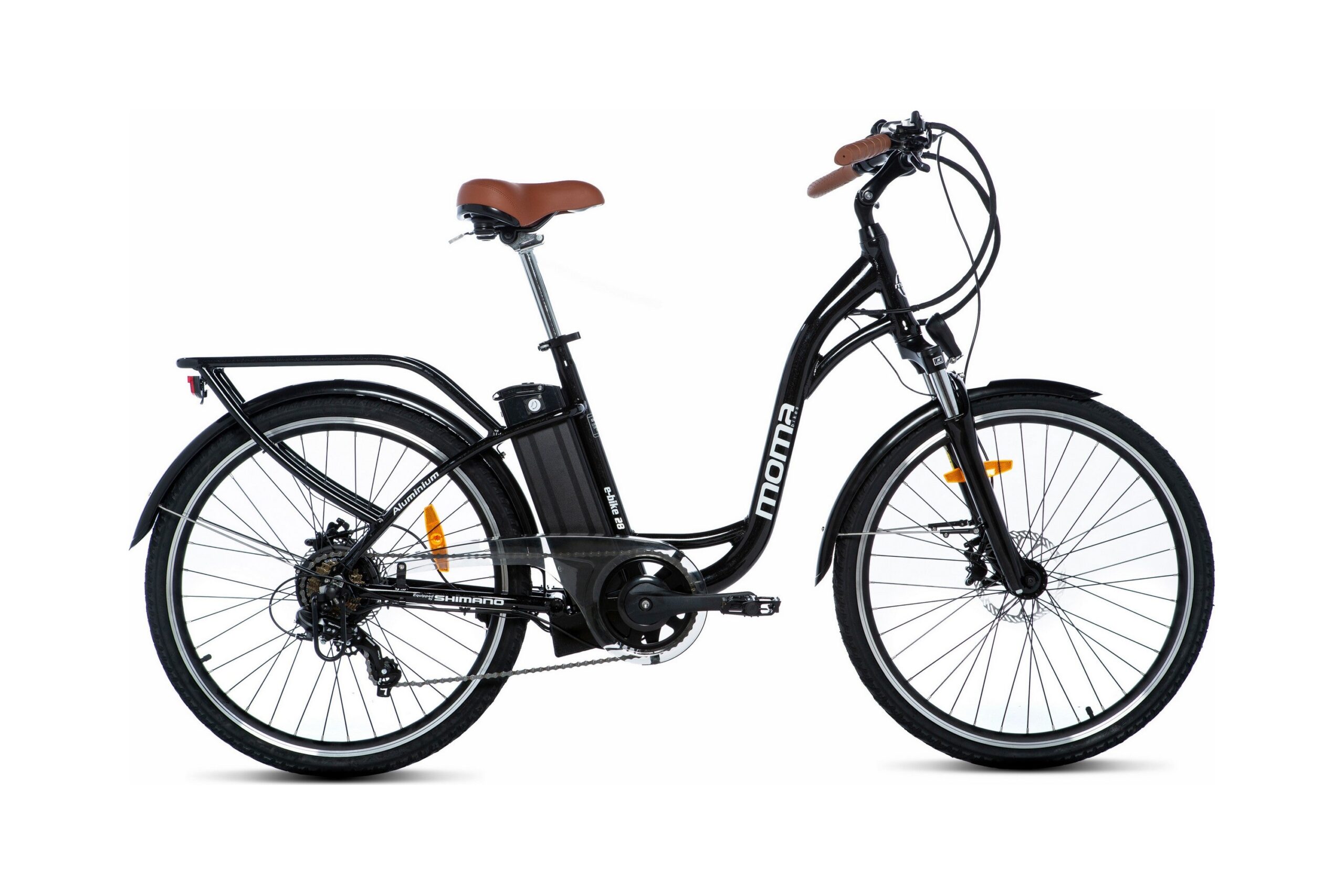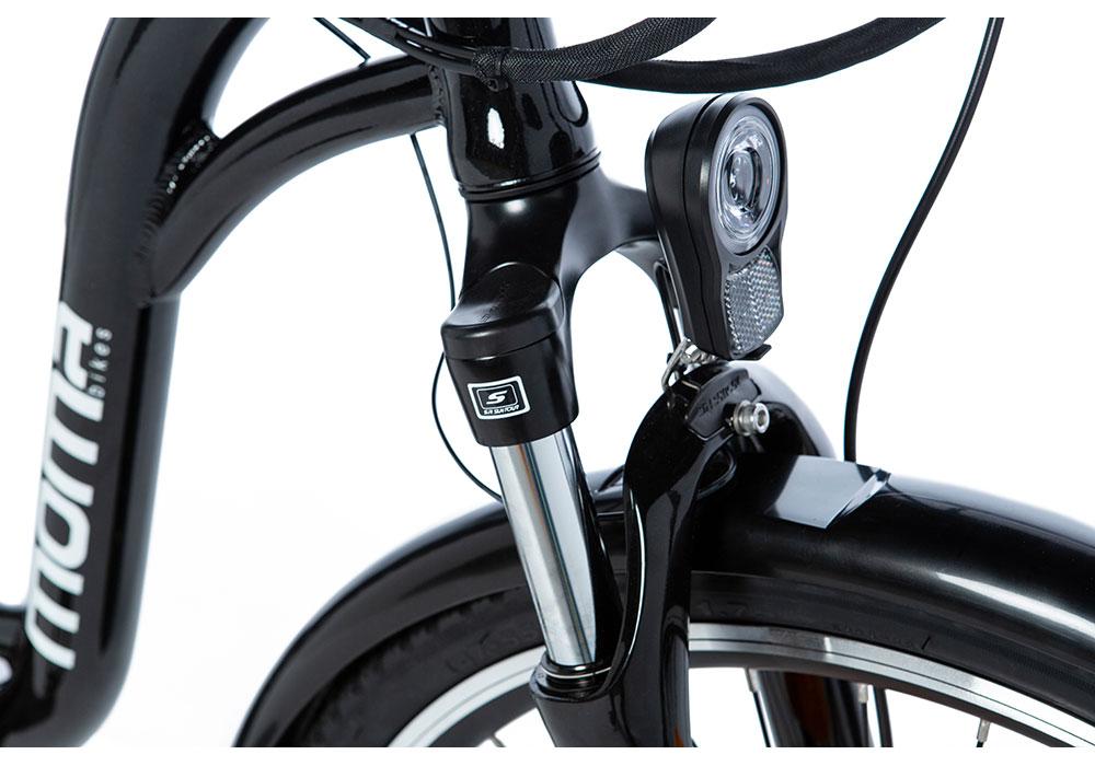 Campainha, cavalete, pára-lamas, proteção de corrente e luzes LED dianteiras e traseiras